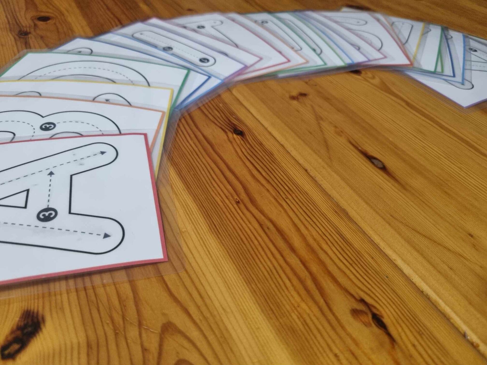 Apprenez à votre enfant à tracer l'alphabet grâce à ce lot de 26 cartes plastifiées, parfaites pour les débuts de l'écriture.